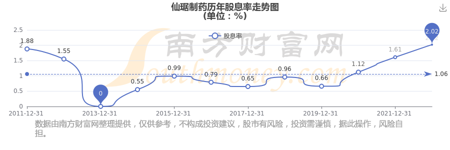 近年仙琚制藥年度股息率走勢如下圖: