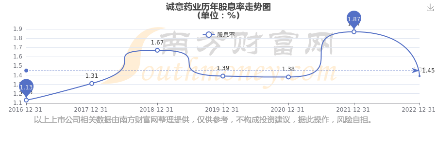 近年誠意藥業(yè)年度股息率走勢如下圖: