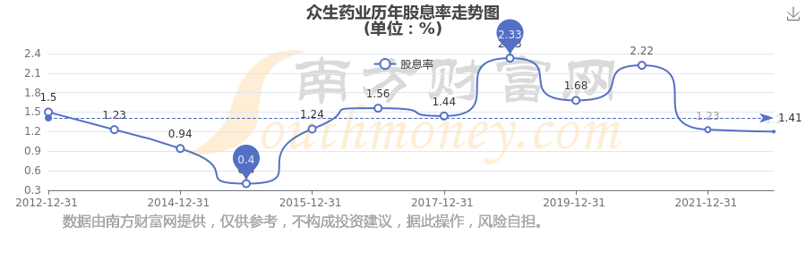 近年眾生藥業(yè)年度股息率走勢(shì)如下圖: