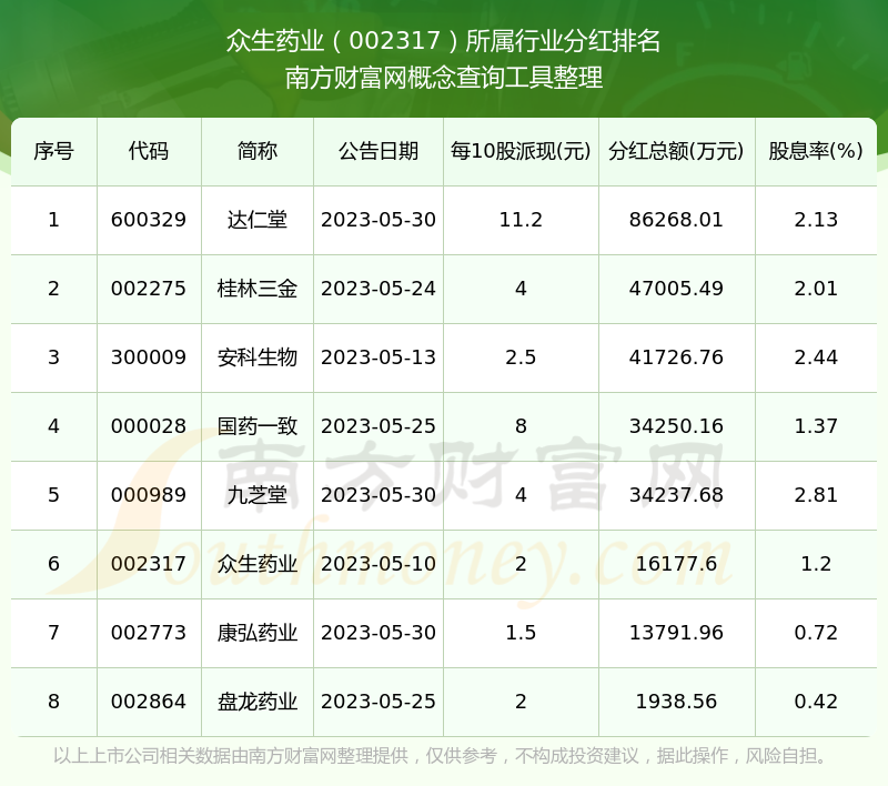 二、眾生藥業(yè)002317行業(yè)分紅排名