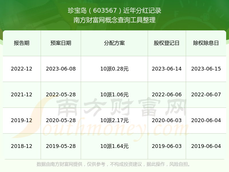 珍寶島最新一次公布的分紅方案:10派0.28元。
