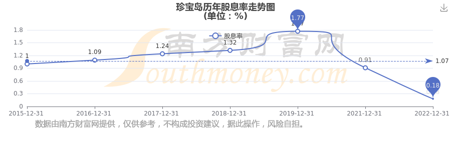 近年珍寶島年度股息率走勢(shì)如下圖: