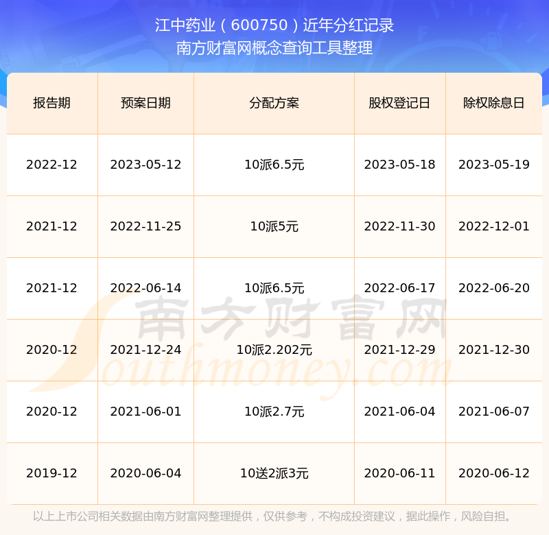 江中藥業(yè)最新一次公布的分紅方案:10派6.5元。