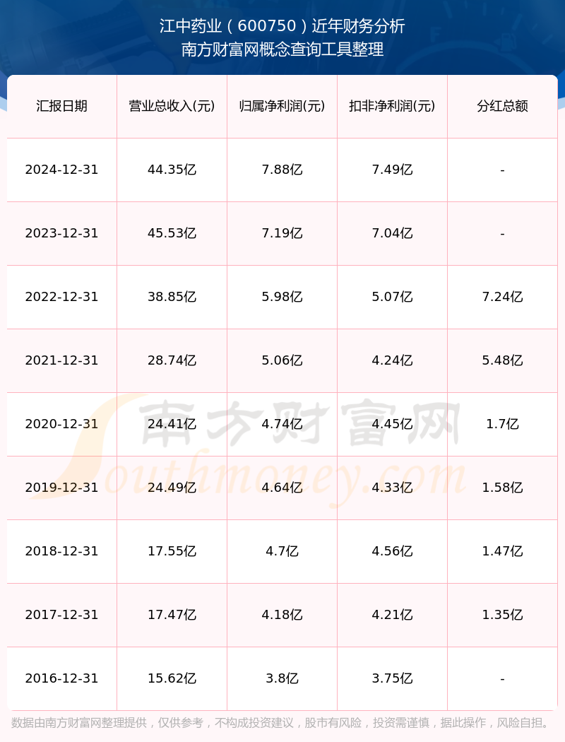 近年江中藥業(yè)分紅派息情況如下表所示: