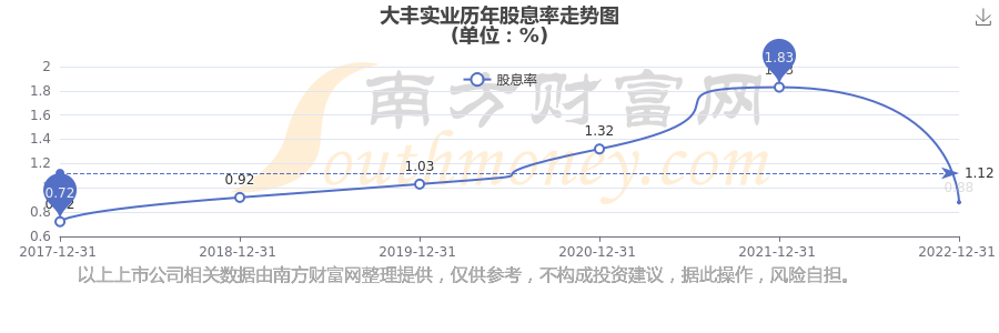 近年大豐實業(yè)年度股息率走勢如下圖: